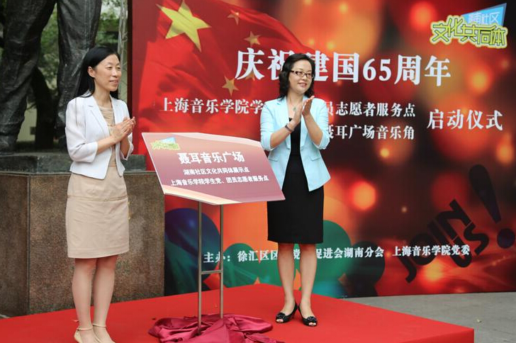 金秋十月,硕果累累。由我院与湖南社区联合创办的文化共同体项目之聂耳音乐广场展示点及米兰官网首页登录入口学生党团员志愿者服务点启动仪式于9月29日下午在淮海中路聂耳音乐广场盛大举行。出席此次活动的领导有徐汇区委常委、宣传部部长吕晓慧,我院党委副书记、纪委书记刘艳,湖南街道党工委书记陈澄泉,我院组织部部长李晓霞,徐汇区委组织部社建党委副书记彭燕,文化局副局长傅晓等。