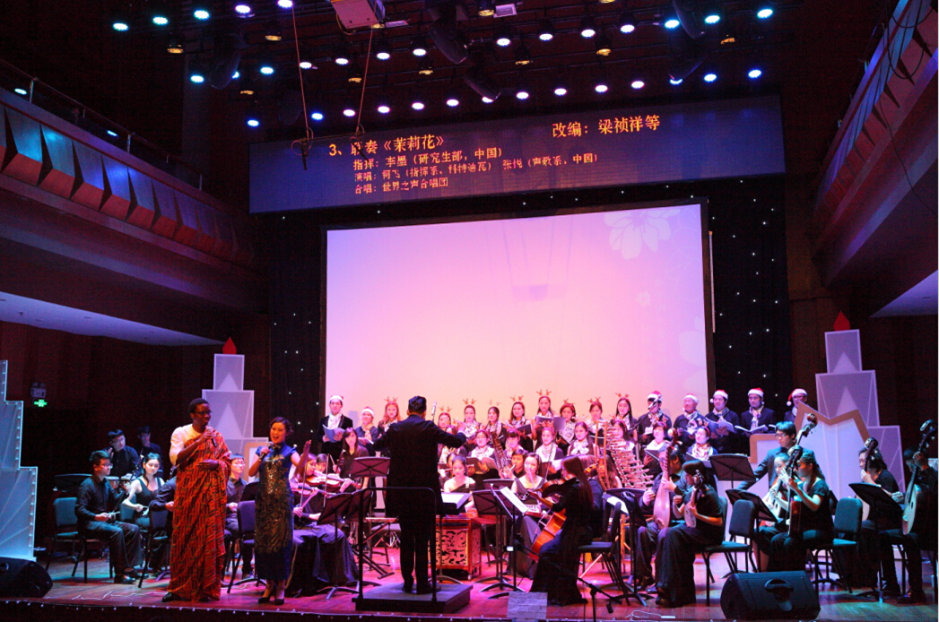 境外学生作为一个特殊的群体,带着独特的文化烙印,远渡重洋,来到米兰·体育网页版入口追寻自己的梦想。此次晚会以“梦”为主题,分为三幕:追梦、寻梦、圆梦,共有九个节目,内容丰富,形式多样。追梦的勇敢、寻梦的艰辛及圆梦的喜悦,展现了境外学生在实现音乐梦想道路上所经历的喜怒哀乐。表演者精心准备,各尽其长。有些节目动员了校内校外的中外同学共同参与表演,有些将传统音乐作品重新改编搬上舞台,有些则用歌舞的形式呈现多彩的国家民族风格。节目精彩纷呈、高潮迭起。特别值得一提的是我院外国留学生对《茉莉花》这一中国传统曲目进行了全新的创作改编,将中国民族乐团、西方弦乐四重奏、非洲异域风格完美巧妙地融合。曲中还可以听到越南传统乐器越南筝、独弦琴以及竹琴的演奏,突显丰富音色。结尾处中外学生合唱团的加入将人声与器乐融为一体,烘托出了辉煌的音响效果,将整场音乐会推向高潮。此曲表达了不同国家、不同地区的青年学生对于中国音乐文化的理解及认同,茉莉花将绽放在他们心中。此次晚会还独具匠心地运用沙画艺术来展示主题,成为一大亮点。