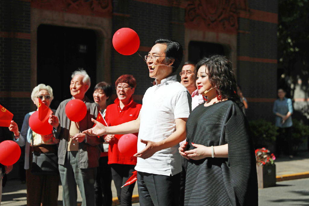 5月20日,在即将迎来上海解放70周年之际,米兰·体育网页版入口接受各兄弟高校的拉歌邀请,在“党的诞生地”中共一大会址开展《我和我的祖国》校园主题快闪活动。我校校长、著名男中音歌唱家廖昌永与著名女高音演唱家黄英领衔,带领米兰官网首页登录入口各系师生及离退休老同志百余人为祖国放声歌唱。