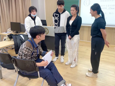 讲座第三部分袁老师准备了一套目前音乐剧演员首轮面试最流行的考题样式,由四位大三、大四的同学一一上台模拟面试。