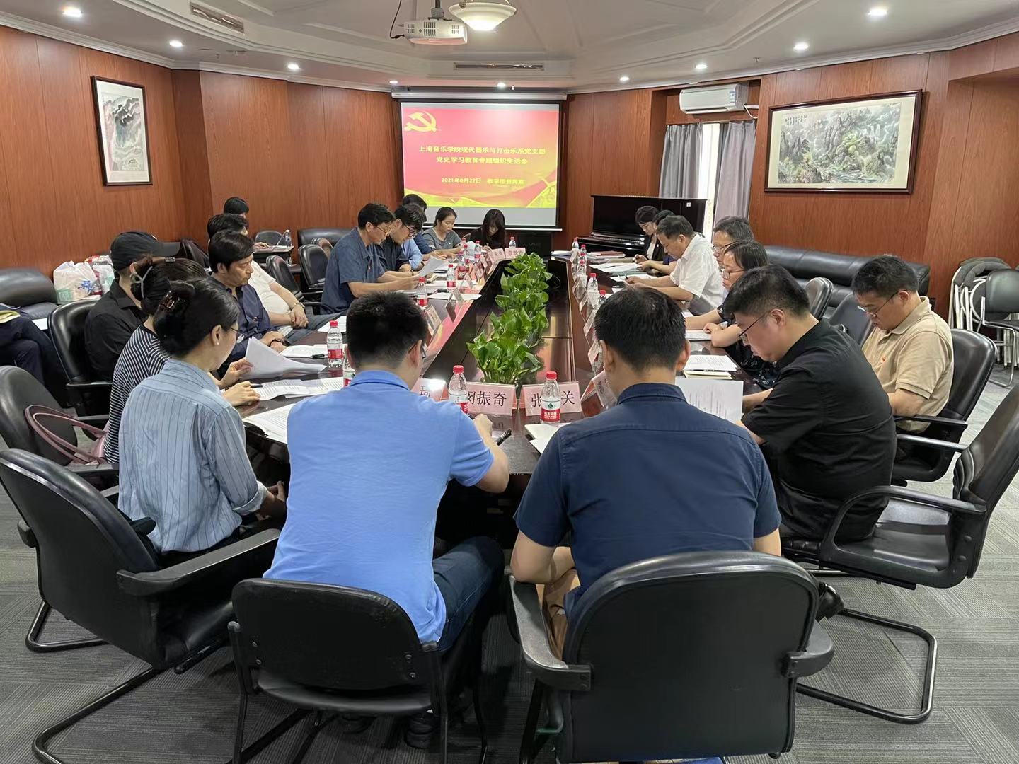 市委党史学习教育第六巡回指导组首先在行政楼408会议室召开了工作座谈会,深入了解我院党史学习教育开展情况。院领导徐旭、廖昌永、徐卫、李艳玲,刘英、冯磊、张佳春以及院党史学习教育领导小组办公室负责人及党员代表等出席会议。座谈会由俞烈主持。