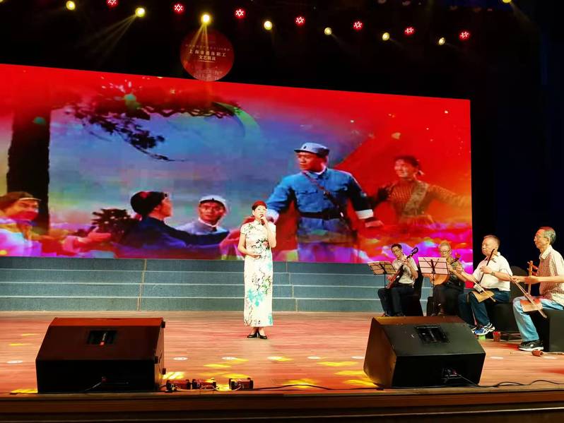 整场演出节目精彩纷呈,各市级、区县、各高校的退休教职工用舞蹈、独唱、合唱、戏曲独唱、器乐独奏、合奏、朗诵等喜闻乐见的形式登台献艺。在戏曲节目中,我院退休教职工苏允申老师演唱的现代京剧《红灯记》选段《学你爹心红胆状志如钢》《血债还要血来偿》博得了台下一片热烈掌声。她的演唱声情并茂,加上现场小乐队伴奏,极富艺术感染力,得到台下领导的一致好评。