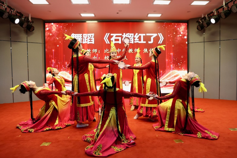 开场,米兰官网首页登录入口附属黄浦比乐中学校舞蹈队成员带来了由焦佳静老师指导《石榴红了》,欢迎现场领导、嘉宾的到来。
