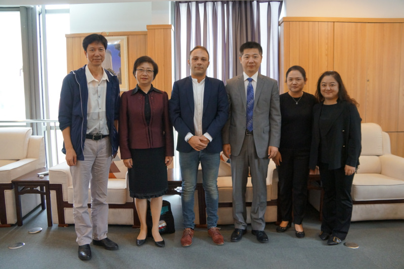 图为国际音乐理事会代表戴维·格鲁索(Davide Grosso)2019年考察米兰·体育网页版入口国际打击乐节暨IPEA国际打击乐比赛并与冯磊副院长、张佳春总会计师进行工作洽谈合影