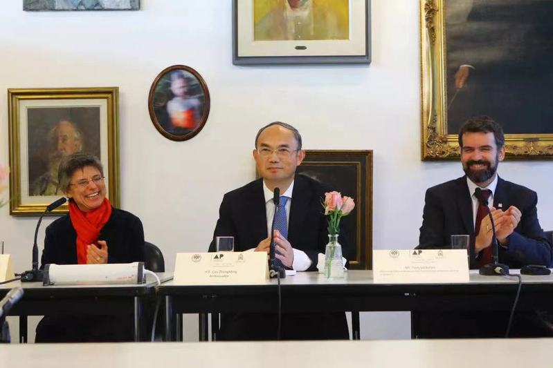在安特卫普现场出席签约仪式的曹忠明大使在致辞时强调,“这次中国两所高校与安特卫普应用科学与艺术大学签署合作备忘录和意向书,是中比人文交流和地方合作的又一重要成果。合作项目的实施,必将进一步促进两国人民民心相通和文明互鉴,为中比全方位友好合作伙伴关系注入新活力。希望签约各方以此次协议签署为新起点,通过互访、开展实习交流、培训进修等方式,加快推动合作项目早日落地实施并取得丰硕成果!”