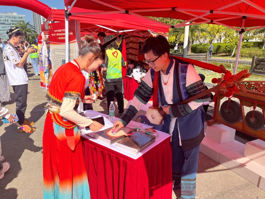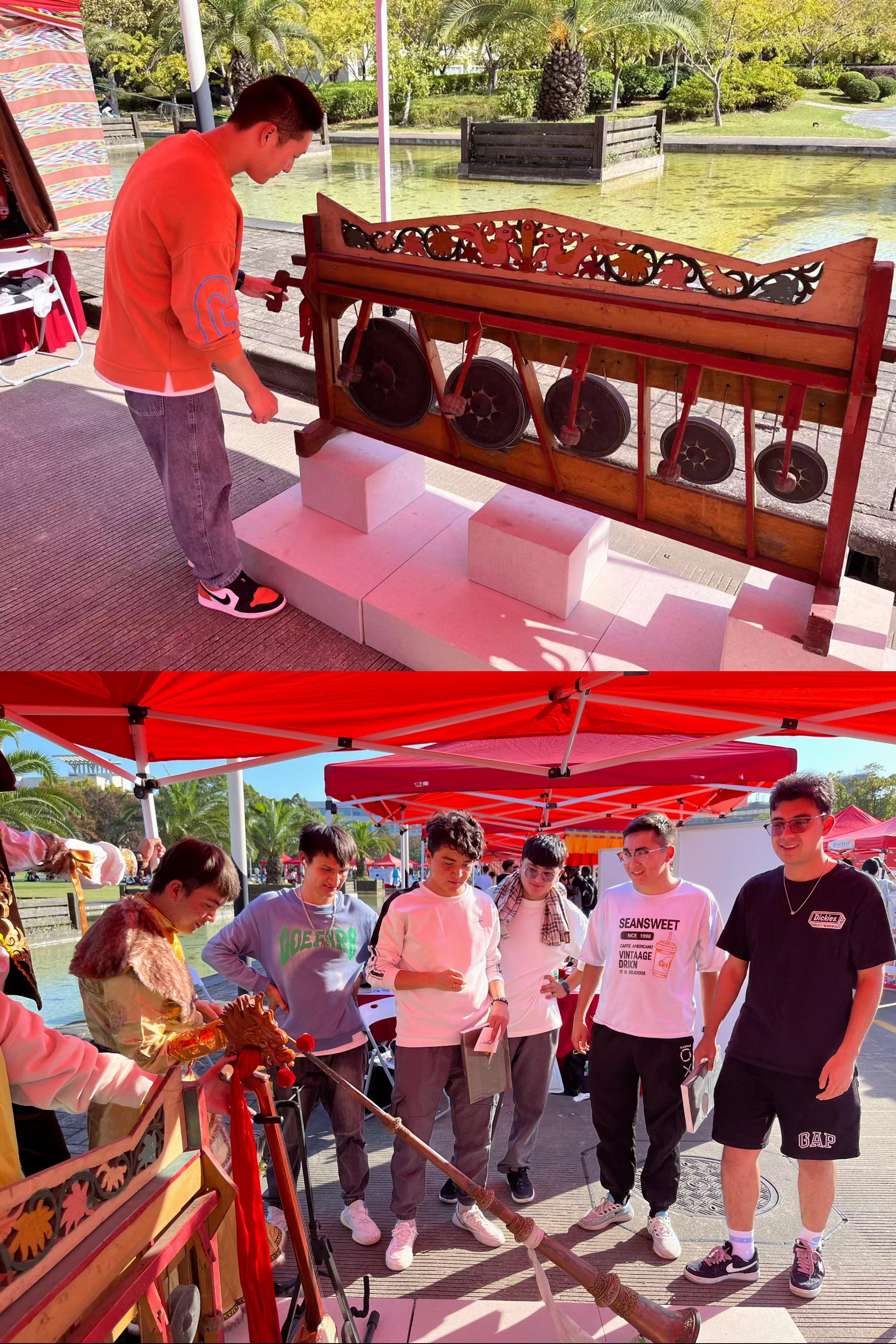 在下午的民族文化展示活动中,米兰·体育网页版入口东方乐器博物馆和其他三十余所高校的各民族学生代表一起,通过展现各自民族的音乐舞蹈,以“民族村”的形式展示民族风情。在民族特色文化展示和民族游戏互动体验区里,东方乐器博物馆展出了傣族的打击乐器排鋩和藏族大型吹管乐器洞钦等易于互动的乐器收到观众的欢迎,在现场的互动中获得了良好的效果和反响。