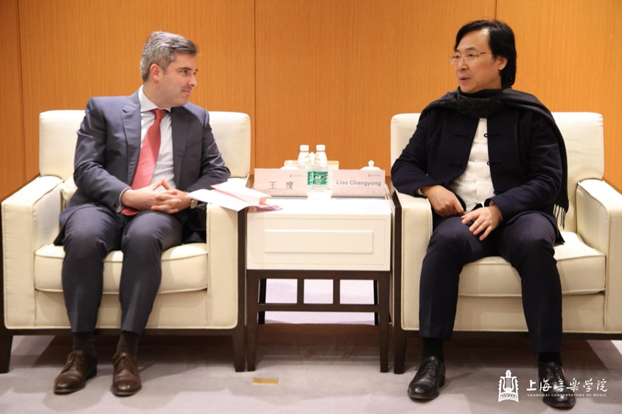 廖昌永对王度一行来访表示热烈欢迎和亲切问候。他强调:“上海音乐学院一直致力于打破国界,促进国际间的音乐与文化交流。我们期待通过这次会谈,继续加深与法国在艺术与文化领域的紧密合作。”廖昌永表示,2024年对于中法两国是意义非凡的一年,今年是中法建交60周年暨中法文化旅游年。上海音乐学院作为一流艺术高校,将积极推进2024上海音乐学院中法艺术节系列项目,以助力迎接这一历史性的篇章。此外,学院将承办第16届法国奥尔良国际钢琴比赛亚太分站赛,学院钢琴系系主任江晨将赴法担任复赛、半决赛以及决赛评委。同时,廖昌永透露,为了纪念法语歌剧《卡门》问世150周年,上音与法国波尔多歌剧院正积极制作中法联合歌剧。他希望在未来歌剧上演之际,总领事一行能够亲临现场,共同见证中法文化交流的重要时刻。