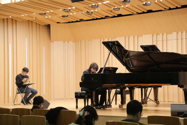整整四个小时的大师课,没有一分钟休息。台上严谨教学,台下热切领悟。李斯特的风格化处理、贝多芬的音程结构和和声衔接的选择,以及作曲技法的特定处理,肖邦的简洁中包罗万象,微妙变化……这些知识点的收获,让上音师生们看到张昊辰在台上的技巧和情感投入相融合的另一面。