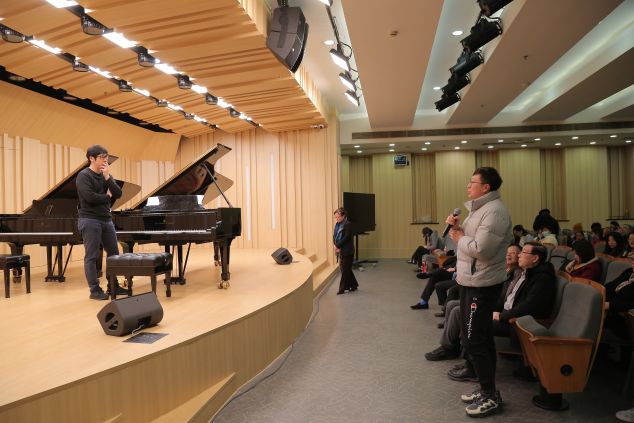 本次大师课还邀请到张昊辰幼时的钢琴启蒙老师吴子杰莅临现场。上音教师在台下注视着“国际青年钢琴演奏家”给“国际青少年获奖选手”上课,这样的学术互动吸引了诸多学子与钢琴爱好者早早就来北报深情守候。甚至还有放寒假已返回外地的学生又中途折返而来,就是为了一睹这位青年大师的风采。
