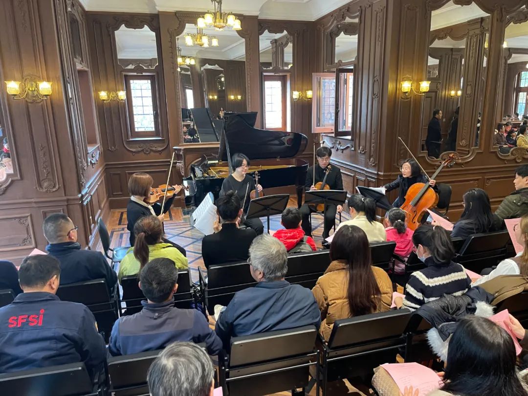 2月10日正值甲辰年农历正月初一。下午,上音“城市音乐会客厅”里响起《新春乐》的乐声。随着欢快的曲调,观众们时而和着节奏点头打拍,时而跟着旋律摇晃。上音公共开放空间新春首场音乐会就在历史保护建筑的“镜厅”内正式开启,党委书记裴小倩、院长廖昌永参加了音乐会。
