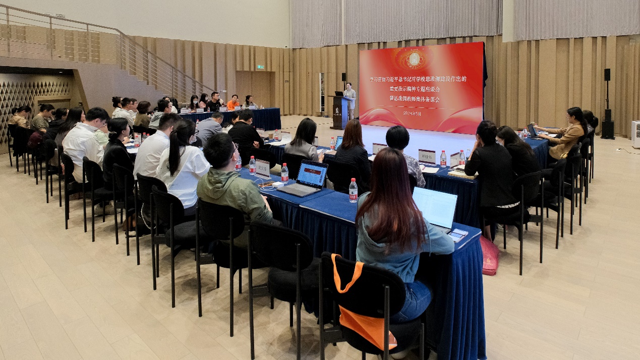 马院李敏、董少校分别领学习近平总书记近日对学校思政课建设做出的重要指示精神和习近平总书记在学校思想政治理论课教师座谈会上的讲话精神,并分享自己的学习心得体会。