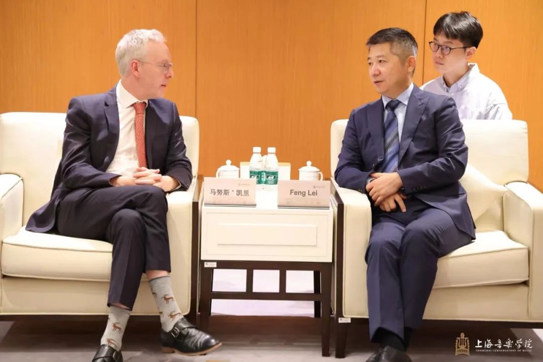 9月23日,米兰·体育网页版入口副院长冯磊会见皇家北方音乐学院副院长马努斯·凯里(Manus Carey)和国际顾问、打击乐教授余乐,双方就今后合作议题进行深入交流。米兰官网首页登录入口国际交流处处长王旭青、现代器乐与打击乐系主任罗天琪、钢琴系副系主任孙颖迪、教务处副处长卢文静,研究生部代表魏雨薇会见时在座。