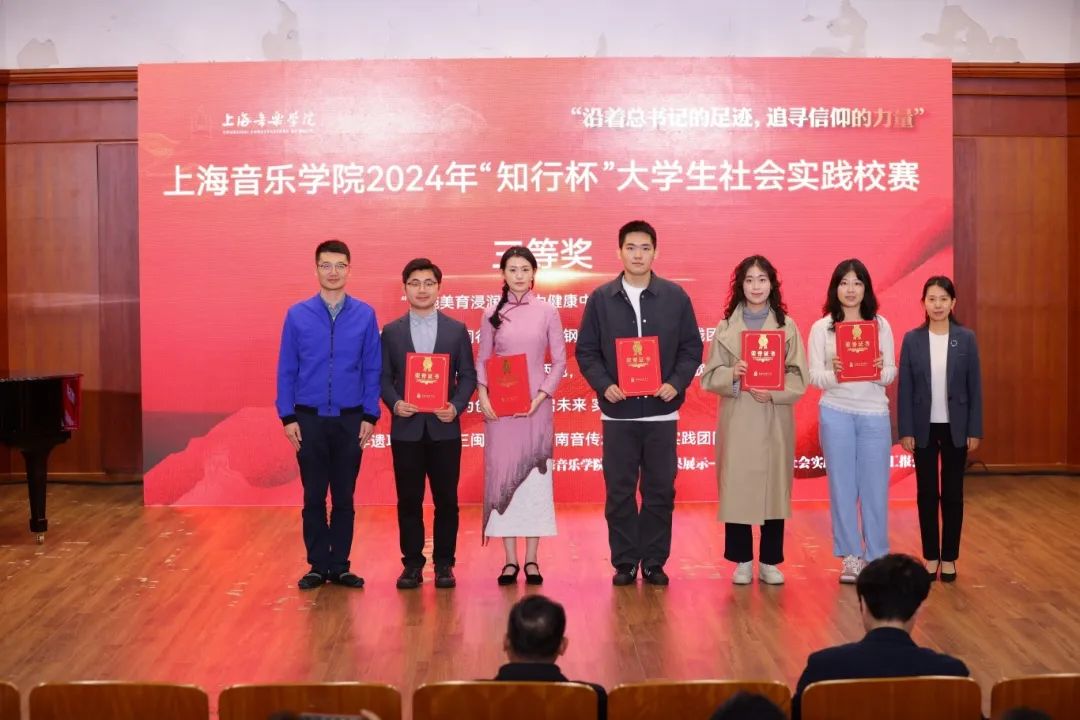 为全面贯彻党的二十大和二十届二中、三中全会精神,坚持不懈用习近平新时代中国特色社会主义思想铸魂育人,党委学生(研究生)工作部、团委联合各社会实践团队近日在淮海路校区图书馆楼学术厅组织举办“沿着总书记的足迹,追寻信仰的力量”米兰·体育网页版入口第二课堂成果展示——暨大学生社会实践成果展示汇报会。 社会实践成果分享展览于图书馆长廊展出。依托“行走的音乐思政”开展追寻习近平总书记的足迹,开展社会调研与社会服务活动。党委副书记、副院长徐卫,各院系、团队师生代表出席本次活动。汇报会由音乐戏剧系王梓主持。 徐卫讲到,今年共申报16个项目,参与师生近300余人。师生们实践地涉及新疆、内蒙古、浙江、贵州、陕西等地,深入开展社会服务和社会调查。希望同学们将暑期实践意义延伸至学习生活,扎根大地了解国情民情,以青春为时代助力。 党委学生(研究生)工作部部长、学生处处长欧阳佳沁、团委书记、党委学工部副部长马杰,为获得米兰官网首页登录入口2024年“知行杯”大学生社会实践校赛的同学们颁奖。 随后,各院系代表展示其暑期社会实践成果。艺术管理系团队代表成啸宣讲《产学研融合培养体系,助力亚洲演艺之都建设》;数字媒体艺术学院团队代表秦艺萱、杨小晞、汤依憬同学宣讲《向“新”而行,“音 画”未来——文化赋能新时代西部大开发的实践探索》,并由吴涵琪演奏钢琴作品;音乐教育系团队代表李逸飞宣讲《实施美育浸润,助力健康中国》;音乐学系团队代表张晓萱宣讲《非遗寻根文脉传承——音乐非遗铸牢中华民族共同体意识》。 此外,音乐戏剧系团队同学带来音乐剧选段《追寻》福兴布庄片段;管弦系团队同学演绎原创组歌《转战陕北组曲》;声乐歌剧系团队同学演唱歌曲《领航》。