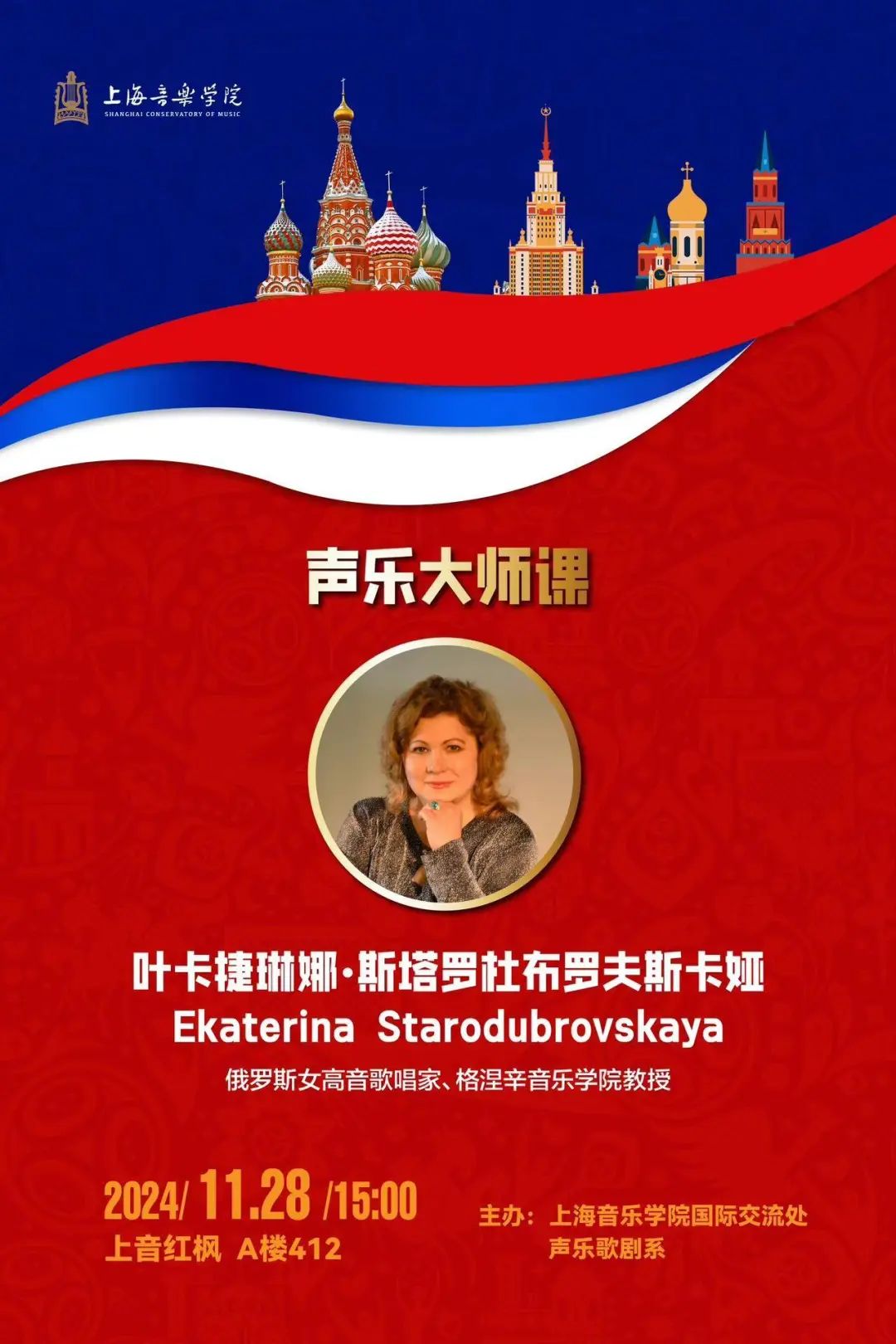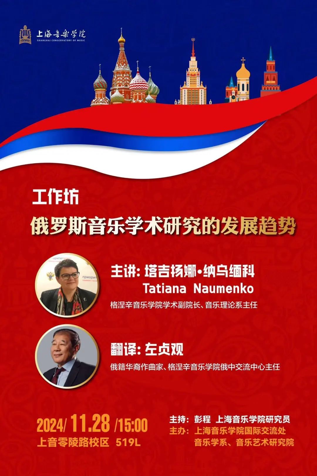 下午,纳乌缅科副院长于零陵路校区举办“俄罗斯音乐学术研究的发展趋势”工作坊,由左贞观主任翻译、彭程研究员主持。斯塔罗杜布罗夫斯卡娅教授于淮海路校区开设声乐大师课。