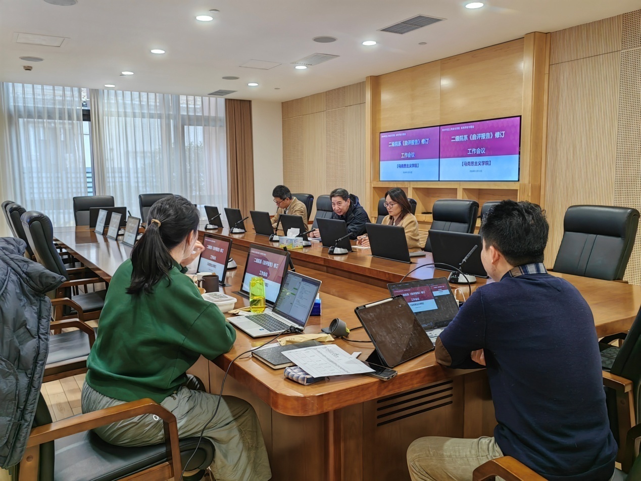 12月12日下午,马克思主义学院在零陵路校区一楼会议室参加了“二级院系《自评报告》修订工作会议”。学校教务处评建办工作组,马克思主义学院马院党政班子、教研室主任代表和秘书参加本次会议。
