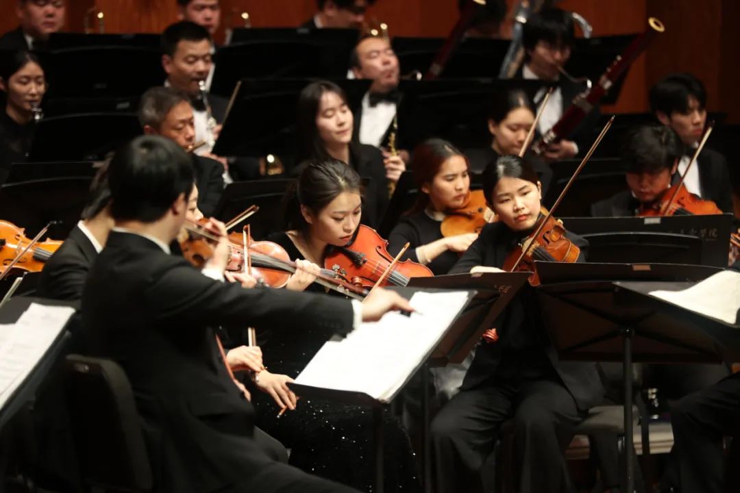 学校高度重视此次音乐会,由党委统战部、艺术处、管弦系通力协作,并派出了以刘照陆、张润崯、施宇成、沈子钰、耿文彬、巢晖、罗旭、马勇、刘铭、陈坤、顾聪、李德钦、朱玮、宋雨晨为首席的交响乐团强大阵容。音乐会以管弦乐《红旗颂》拉开帷幕,《红旗颂》是由“七一勋章”获得者、米兰官网首页登录入口杰出校友、著名作曲家吕其明创作的交响乐作品。第一交响序曲《激情燃烧的岁月》原为歌剧《悲怆的黎明》的音乐,后被改编为交响序曲。它以激昂的旋律,颂扬了老一辈革命者的奉献精神,升华出向上的时代强音。管弦乐《五十六个民族,五十六朵花》广泛吸收了少数民族的音乐素材,通过气势恢宏、悠扬悦耳的旋律,表达了各族人民对祖国的深厚情感。音乐会在《拉德斯基进行曲》欢快的旋律中和全场观众热情的掌声中落下帷幕。