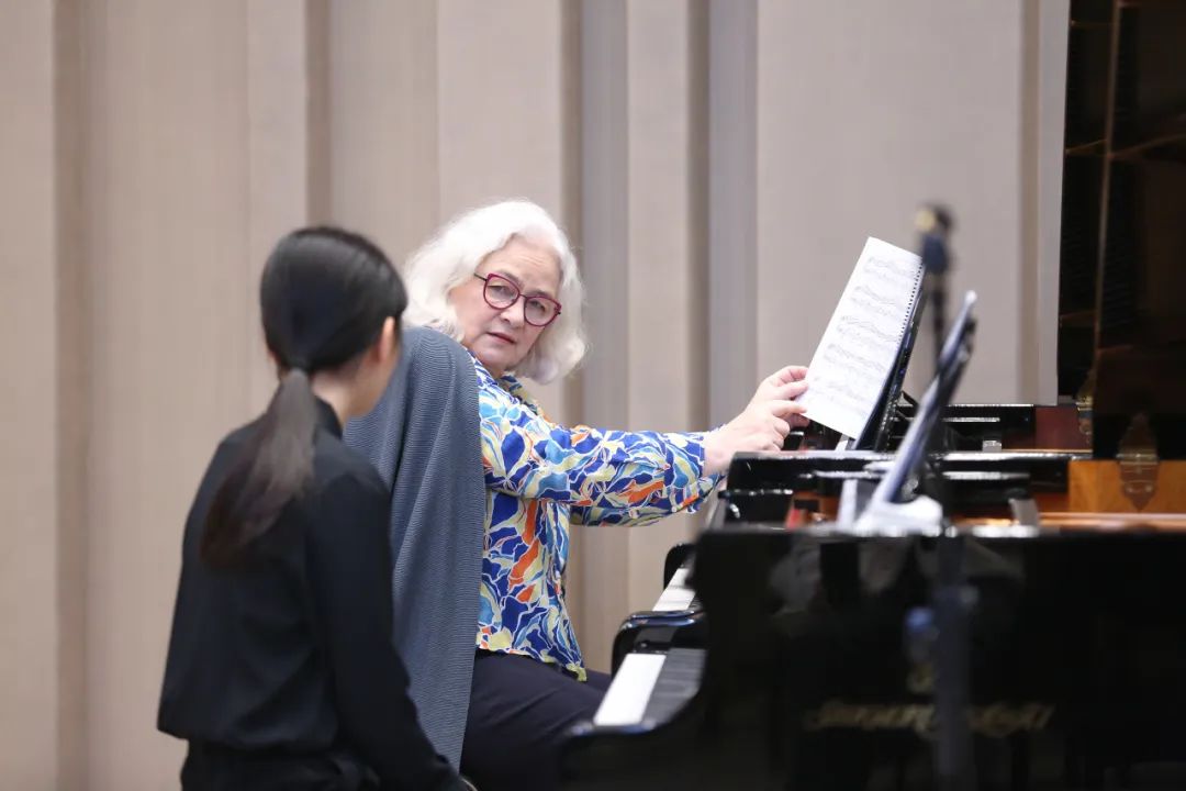 爱娃在公开课上反复强调精准读谱的重要性,要求学生在演奏时,必须细致入微地解读乐谱上的每一个符号,尤其是力度记号与重音标记。力度记号不仅是音响的强弱效果,更重要的是背后所蕴含的意义。她注重引导学生发现音乐中的关键音,这些关键音就像是音乐故事中的某些重要情节,可以通过力度或时间的调整来强调。
