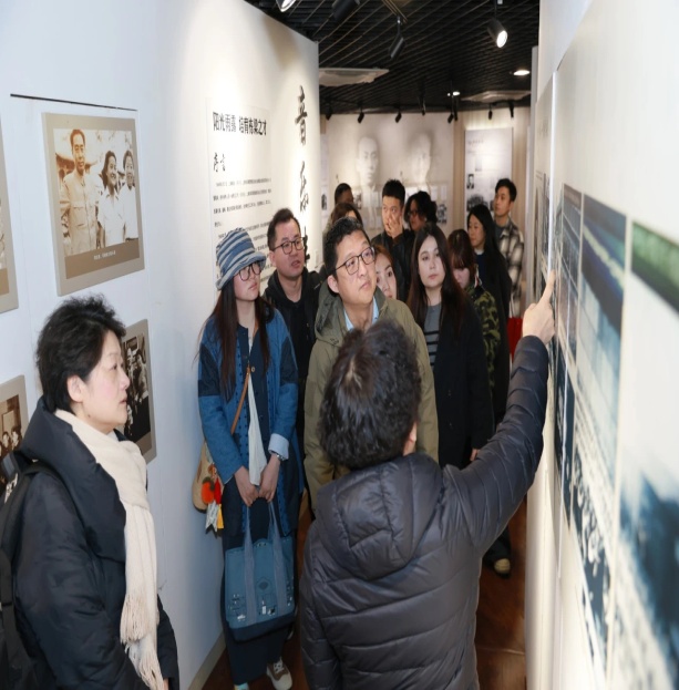 2025年4月1日下午,“三人行”上海创新创业师资活动在米兰·体育网页版入口举行,来自沪上各兄弟院校双创领域的专家学者、教师代表、“领雁班”、“群雁班”优秀学员代表30人在学生处温老师陪同下参观了米兰官网首页登录入口校史馆,校史馆周老师为参观者重点介绍了校史馆的办学历程以及改革开放以来我校在立德树人、艺术科研等方面所取得的杰出成果。通过珍贵的历史资料深入了解学院发展历史中积淀的深厚艺术底蕴。