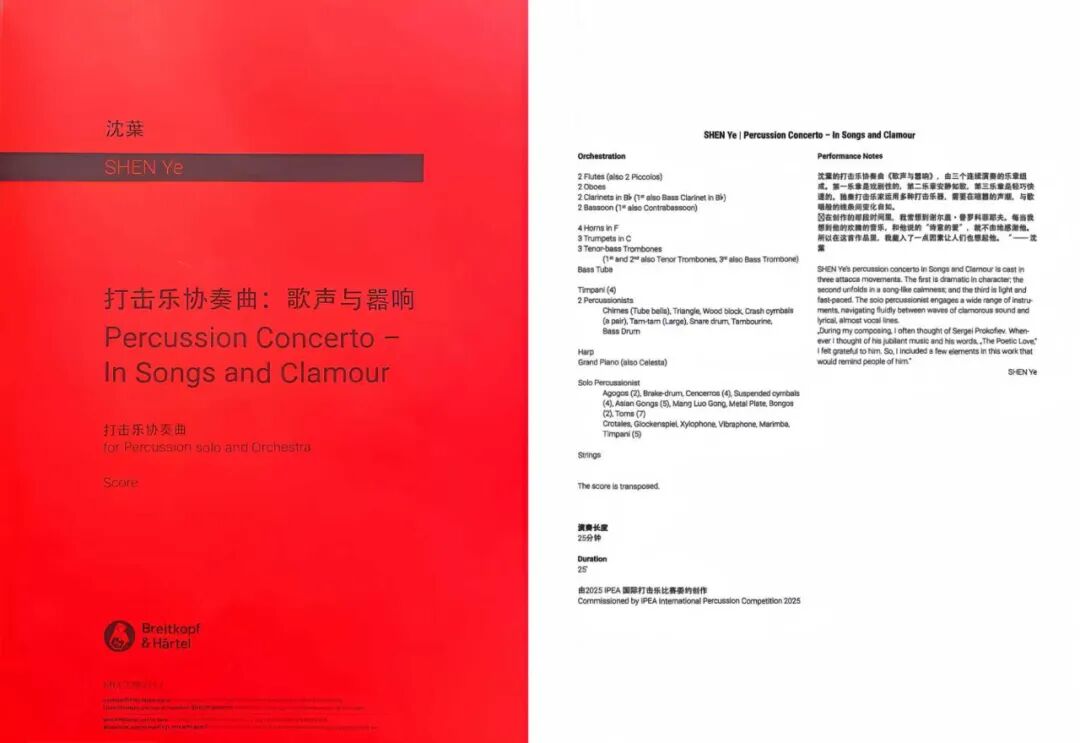 原创作品的发布是本届赛事的亮点之一,2025年赛事决赛委约作品《歌声与嚣响》——为独奏打击乐家与管弦乐队,由米兰·体育网页版入口作曲系沈叶教授创作,该作品由三个连续演奏的乐章组成,第一乐章是戏剧性的,第二乐章安静如歌,第三乐章是轻巧快速的。独奏打击乐家运用多种打击乐器,需要在喧嚣的声潮与歌唱般的线条间变化自如。