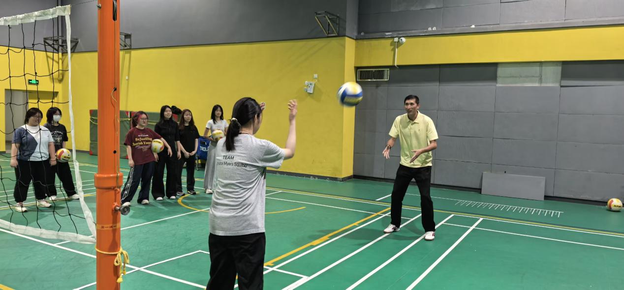在分组练习过程中即时指导、纠正细节。整堂课节奏明快、互动频频,欢声笑语不断,让师生们在亲身参与中扎实地掌握了气排球的基础技巧。