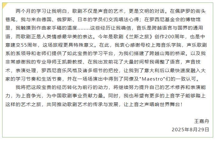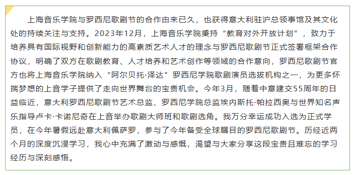 罗西尼歌剧节之旅:米兰·体育网页版入口声歌系学子王嘉舟的深度分享