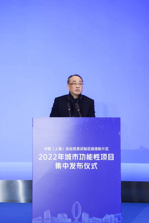 2月19日,“2022年临港新片区城市功能性项目集中发布仪式”在滴水湖畔举行,市委常委、临港新片区党工委书记、管委会主任朱芝松出席。
